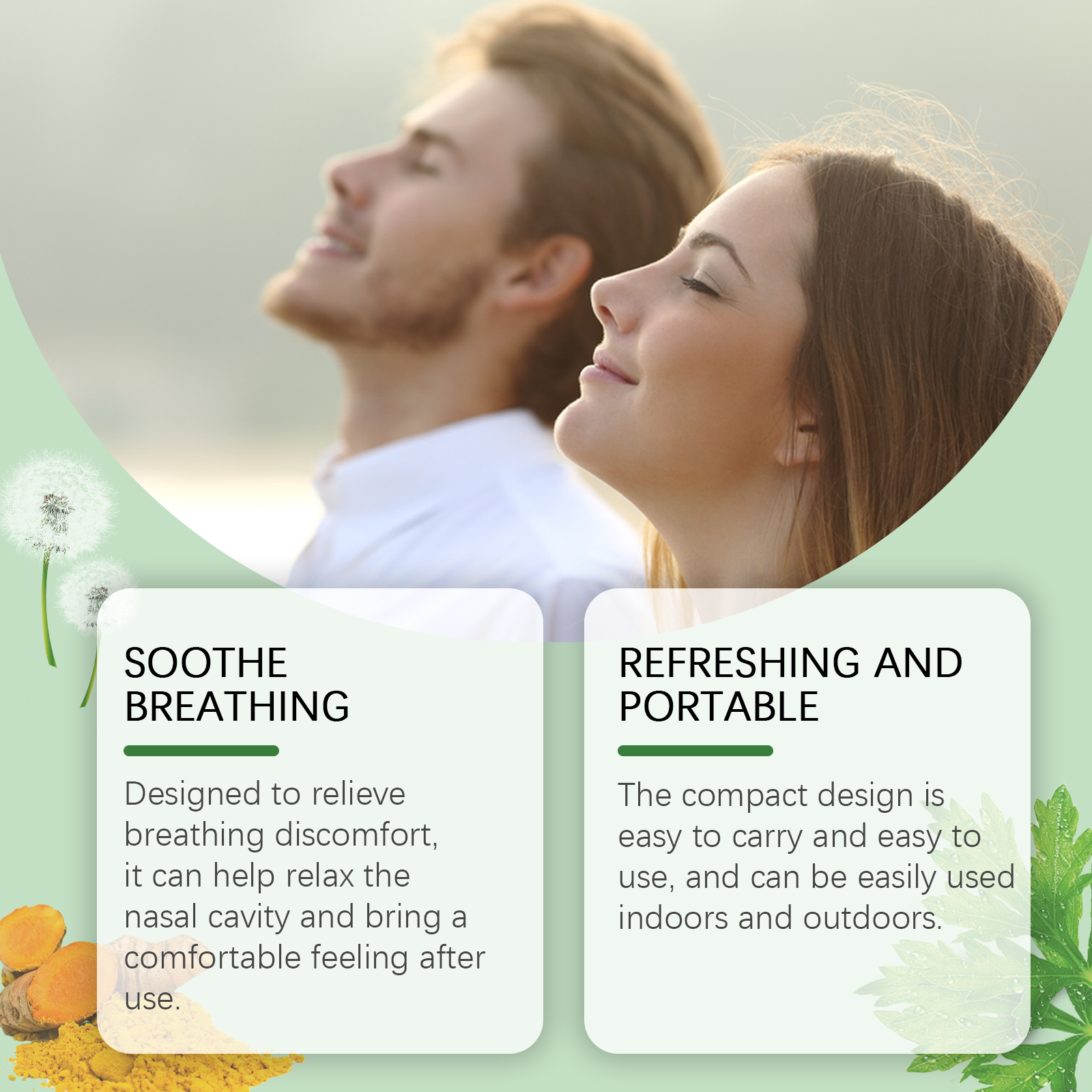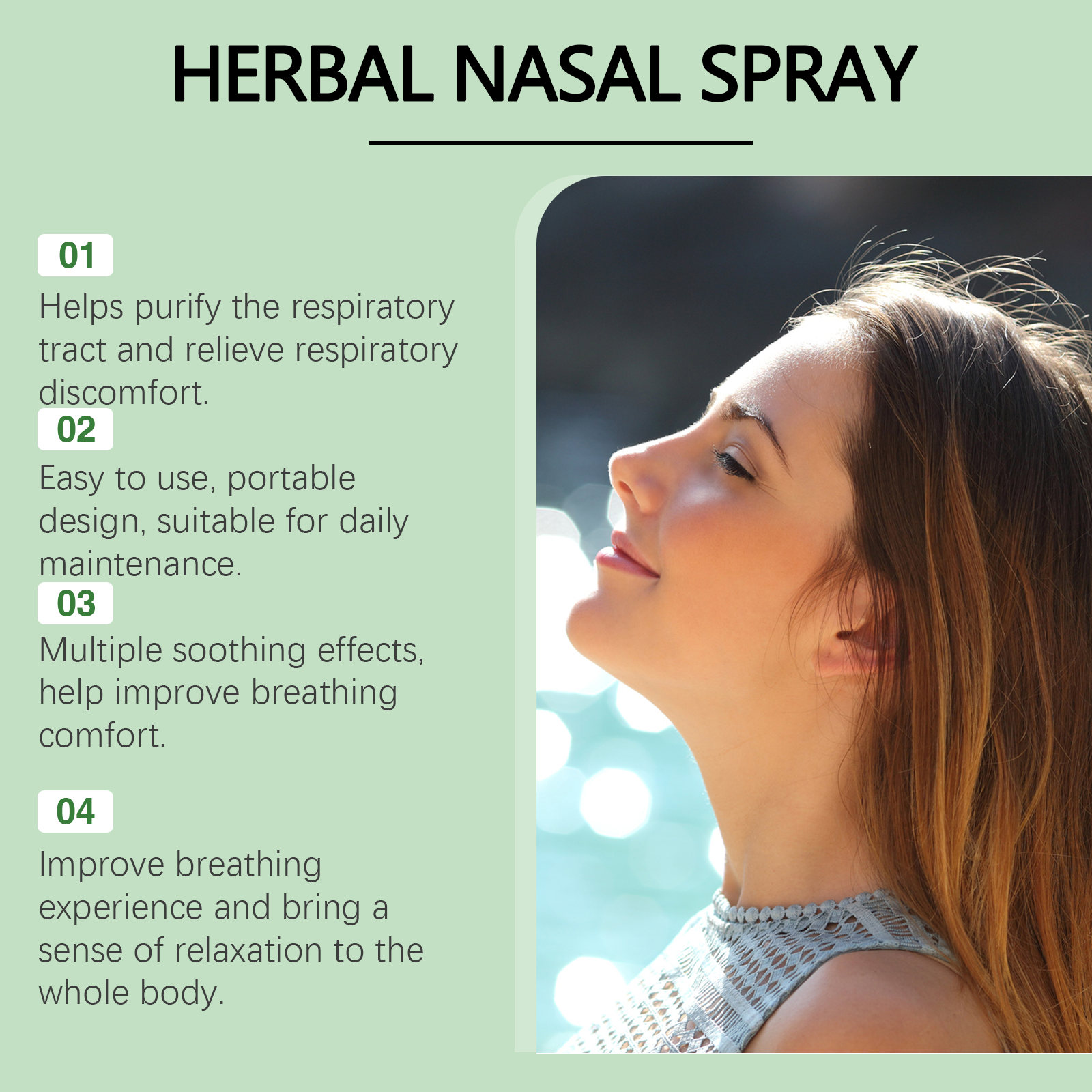 Our herbal nasal spray contains mugwort root and safflower, which relaxes the nasal passages and creates a comfortable feeling after use. Its use is simple: clean and dry your nasal passages. Shake well, remove the cap and insert the spray nozzle into your nostrils. Spray lightly and inhale slowly. And the compact shape design is easy to carry and use, indoor and outdoor can be easily used.
