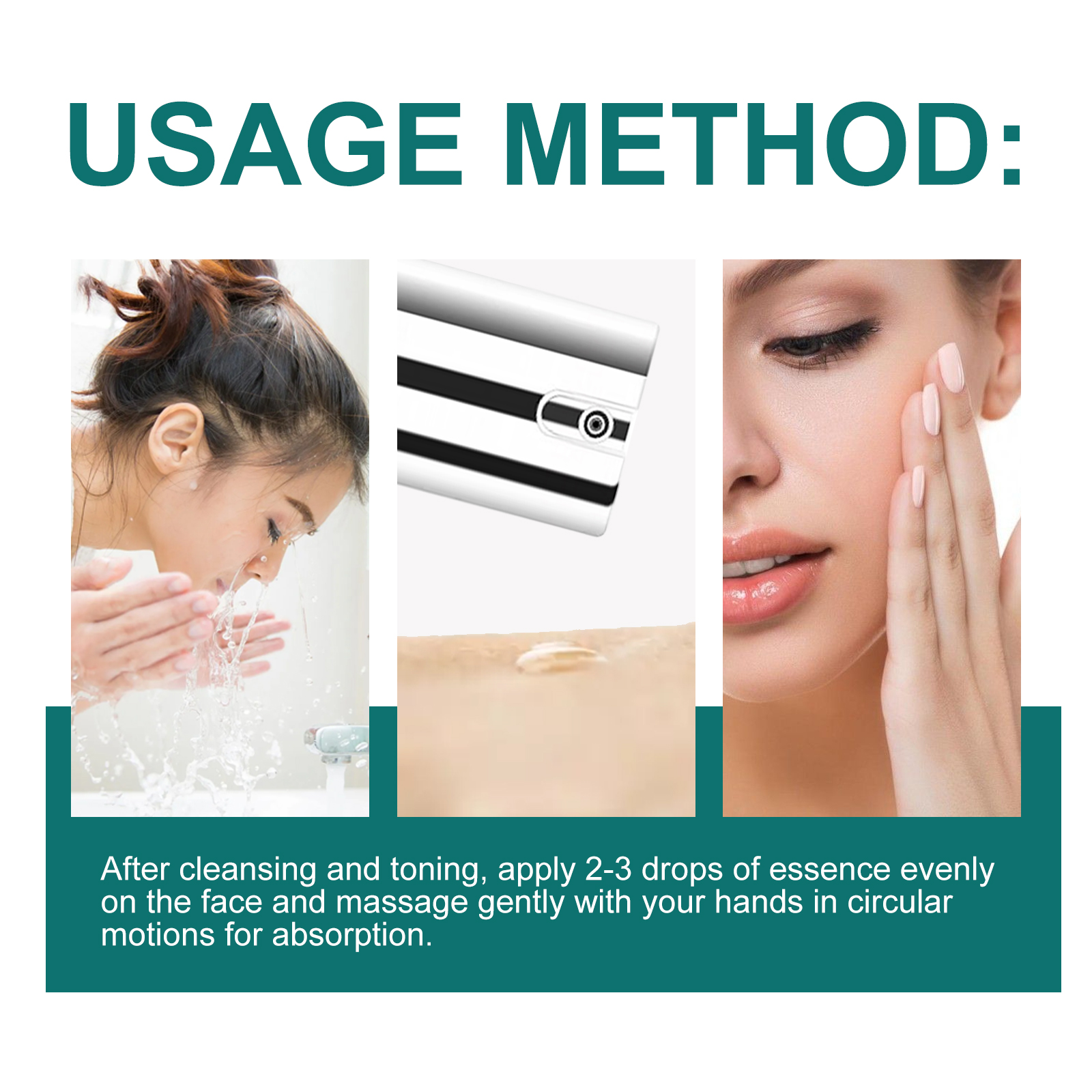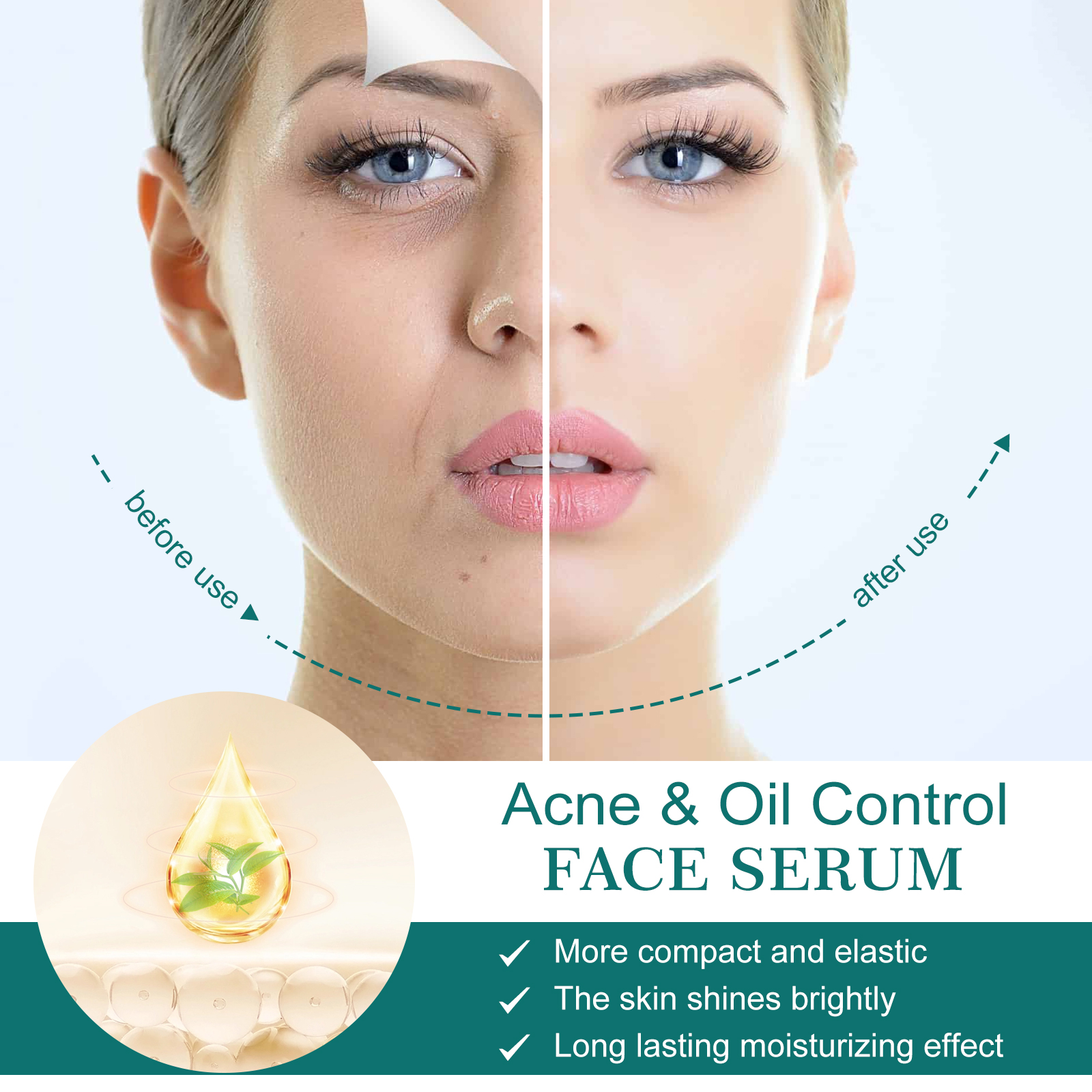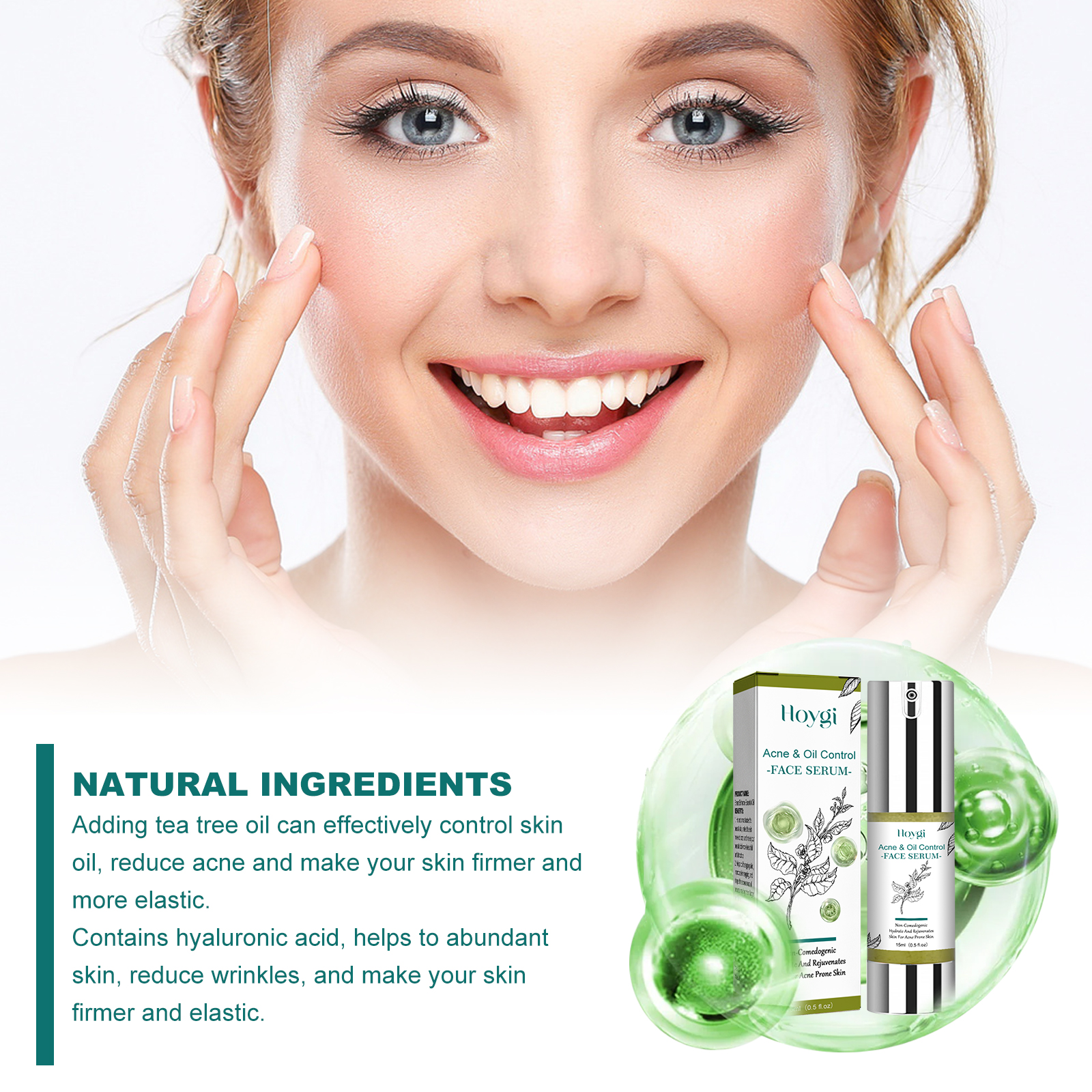 Our Tea Tree Oil Facial serum contains tea tree oil, aloe vera extract, green tea extract. It can effectively control oil, reduce acne, make skin firmer and more elastic, plump skin, reduce wrinkles, make skin firmer and more elastic. Its use method is very simple: after cleansing and toning, take 2-3 drops of essence evenly apply to the face, gently massage with your hand in circles until absorbed. And can care and moisturize the face.