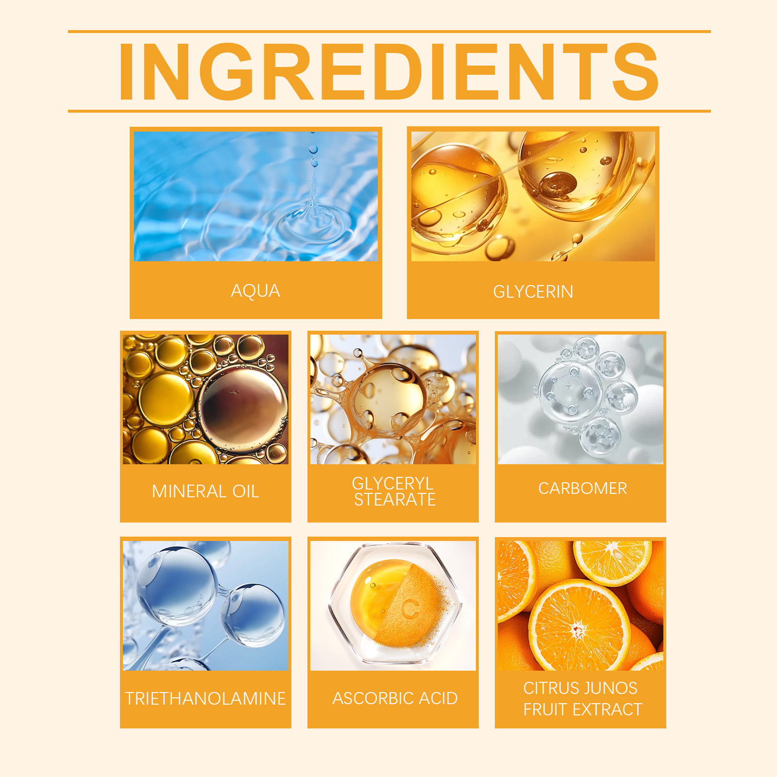 Our vitamin C cream is carefully formulated with triethanolamine and ascorbic acid. Designed specifically to reduce fine lines and wrinkles. The usage method is extremely convenient: Clean the facial skin and keep it dry. Take an appropriate amount of this product and apply it evenly to the facial skin. Gently massage with your fingertips in circular motions until it is fully absorbed. And it can even out skin tone and reduce spots and dullness.