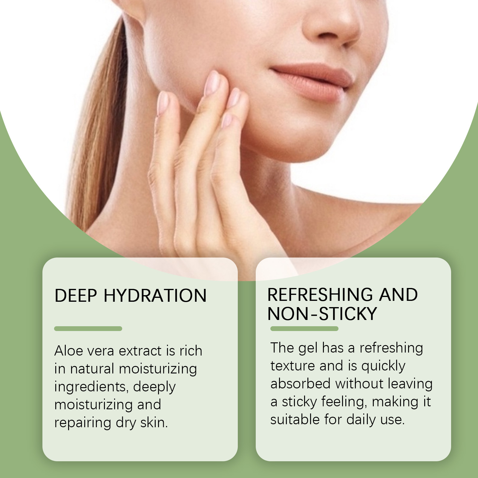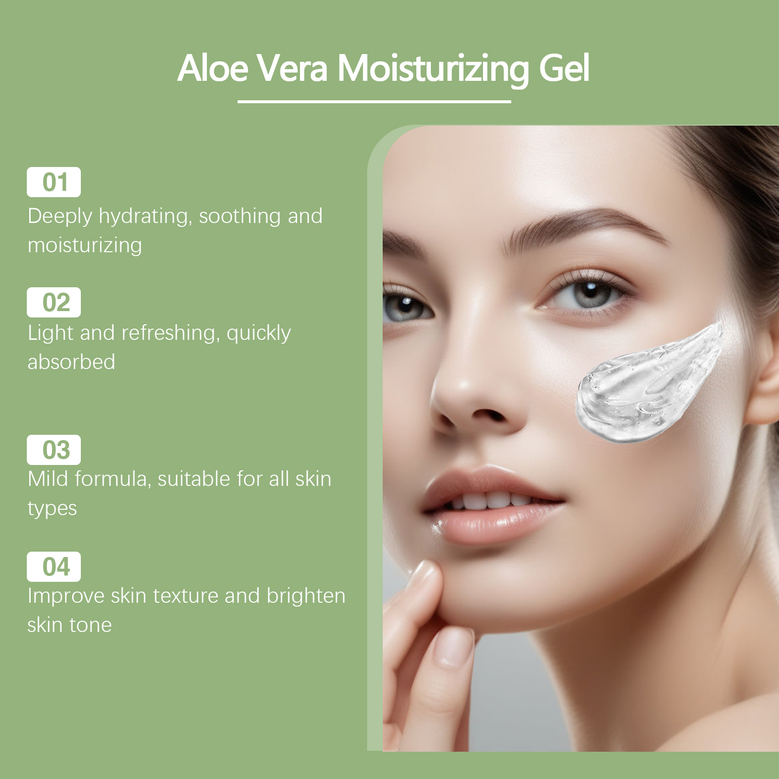 Our aloe vera moisturizing gel contains aloe extract, xanthan gum and citric acid. It is rich in natural moisturizing ingredients, deeply nourishing and repairing dry skin. The application method is very simple: 1. Keep the skin clean and dry. 2. Take an appropriate amount of the aloe gel and apply it evenly on the skin that needs care. 3. Gently massage the skin in circular motions to promote the absorption of nutrients. The gel has a refreshing texture, absorbs quickly, and does not leave a sticky sensation. It is suitable for daily use.